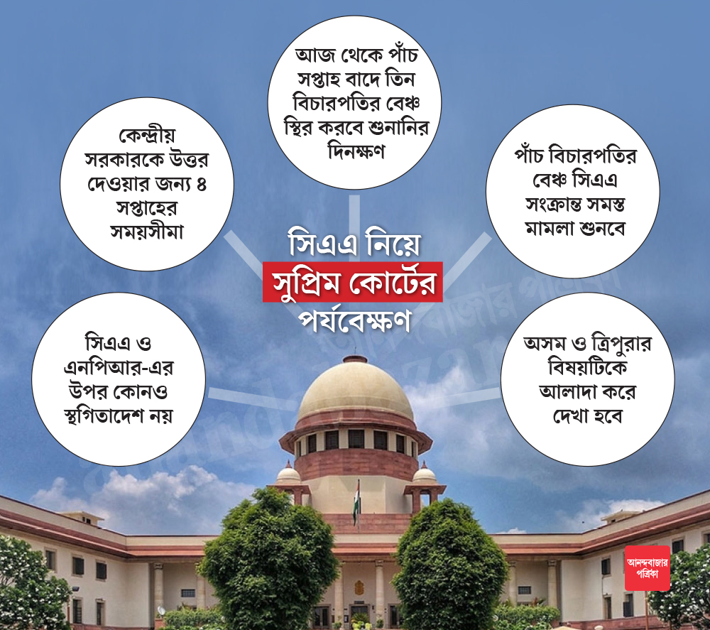 • পাঁচ বিচারপতির বেঞ্চ সিএএ সংক্রান্ত সমস্ত মামলা শুনবে