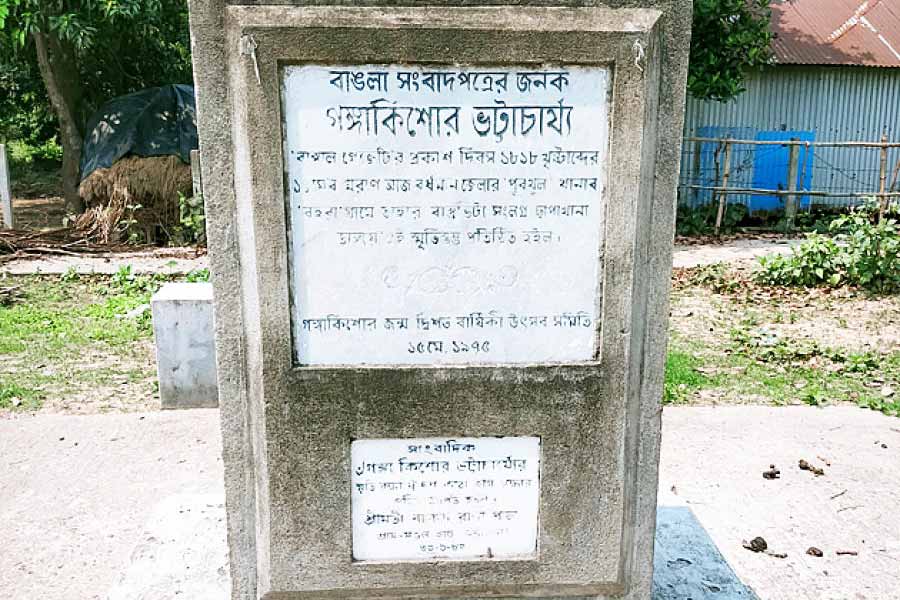 প্রায় একক প্রচেষ্টায় ছাপাখানা প্রতিষ্ঠাই হোক বা প্রথম সচিত্র বাংলা বই, ভারতচন্দ্রের অন্নদামঙ্গল-এর প্রকাশ— প্রথম বাঙালি মুদ্রক-প্রকাশক হিসাবে ইতিহাসে গঙ্গাকিশোর ভট্টাচার্যের নাম থাকলেও জনমানসে তিনি বিস্মৃতপ্রায়। ১৮১৮-তে বেরোয় তাঁর বাঙ্গাল গেজ়েটি, প্রথম কোনও বাঙালির সম্পাদিত সংবাদপত্র— দু’শো বছর আগে যা সোজা কাজ ছিল না মোটেই। লন্ডনের এশিয়াটিক জার্নাল-এ উল্লিখিত তাঁর নাম, তবু সমকালে মর্যাদা পাননি তিনি, পাওয়া যায় না তাঁর কোনও ছবি বা সম্পাদিত সংবাদপত্রের কপি। এই মানুষটির জীবন ও কাজকেই তুলে ধরেছে পুলক মণ্ডলের বই উপেক্ষিত নায়ক গঙ্গাকিশোর (প্রকা: ভাষাপথ)। জরুরি নানা তথ্য, দুষ্প্রাপ্য ছবি সম্বলিত বইটির ভূমিকা লিখেছেন রামকুমার মুখোপাধ্যায় ও সুদীপ চক্রবর্তী। ছবিতে বহড়া গ্রামে গঙ্গাকিশোরের স্মৃতিফলক ও ভগ্ন বসতবাটি, লেখকের সৌজন্যে প্রাপ্ত।