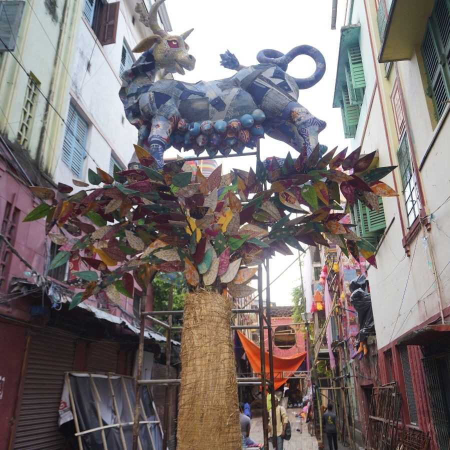 মণ্ডপ নির্মাণের অন্যান্য সামগ্রীর মধ্যে রয়েছে - প্লাস্টার অফ প্যারিস, ফোম, কাঠ, দড়ি প্রভৃতি।