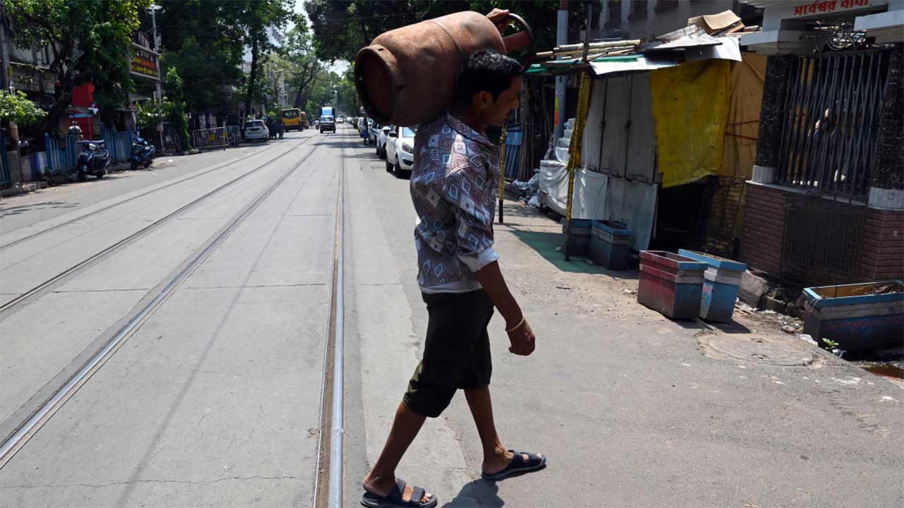 গ্যাস নিয়ে বাড়ির পথে। কলকাতায় শুক্রবার। — নিজস্ব চিত্র।