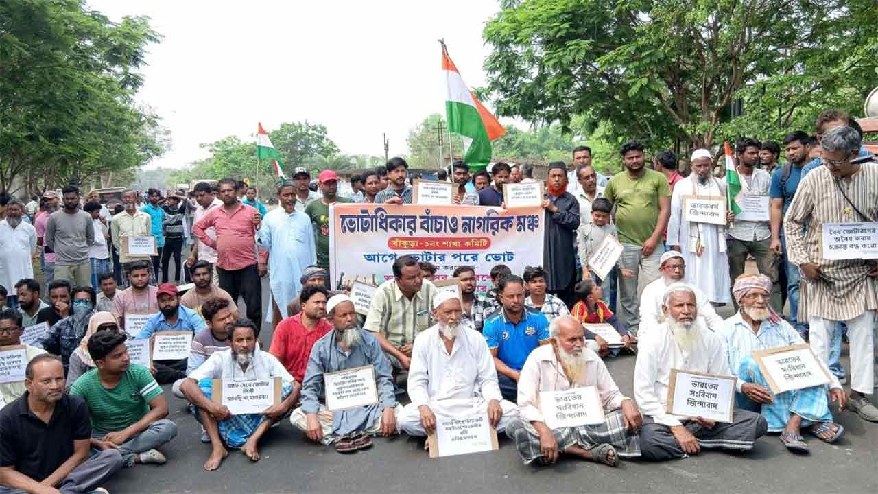 বাতিল: সংশোধিত ভোটার তালিকায় নাম বাদ দেখে পথ অবরোধে মানুষ, বাঁকুড়া-রাইপুর রোড, ১১ মার্চ।