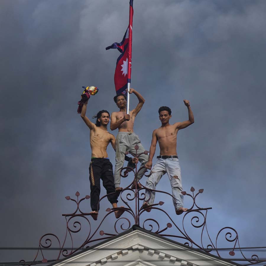 ঠিকই। এমন পরিস্থিতিতে ছাত্রযুবদের সঙ্গে ছল্লিবল্লি করলে মুশকিল! তারা অবলীলায় পুলিশি ব্যারিকেড উপড়ে, ভেঙে ভিতরে ঢুকে দেশের সংসদ ভবনের মাথায় চড়তে পারে। নেই-চাকরি, নেই-জীবিকার দেশে মন্ত্রী এবং তাঁদের সন্তানদের দামি গাড়ি আর বিলাসবহুল জীবনযাত্রা দেখতে দেখতে ভিতরে ক্রমাগত ক্রোধের বারুদ জমাতে পারে একদিন বিস্ফোরণের জন্য। তারা অবলীলায় উড়ে এসে রাজপথ ধরে পলায়নপর অর্থমন্ত্রীর মাজায় জোড়া পায়ে ক্যাঁৎ করে লাথি কষাতে পারে। একের পর এক সমাজমাধ্যম বন্ধ করে (নেপালে কোটি কোটি যুবক-যুবতী ফেসবুক এবং ইনস্টাগ্রাম ব্যবহার করে অনলাইনে ব্যবসা করে জীবিকা নির্বাহ করেন। কারণ, দেশে চাকরি নেই) তাদের আটকানো যায় না। বরং দ্বিগুণ, তিনগুণ বিক্রম নিয়ে তারা অভীষ্টের দিকে ধেয়ে যায়। তাদের সমবেত দৌড়ের সামনে পিছু হটতে থাকে জলকামান। তারা কাঁদানে গ্যাসের শেল রাস্তা থেকে রুমালে জড়িয়ে তুলে নিয়ে পাল্টা ছোড়ে পুলিশের দিকে। কার্ফুর তোয়াক্কা না করে হাজারে হাজারে, লাখে লাখে রাস্তায় বেরিয়ে পড়ে। পুলিশ এবং ফৌজের বাধার তোয়াক্কা করে না। নির্বিচারে হামলা চালায়, আগুন লাগায় ধনী মন্ত্রী-রাজনীতিকদের বহুমূল্য বসতবাড়িতে।