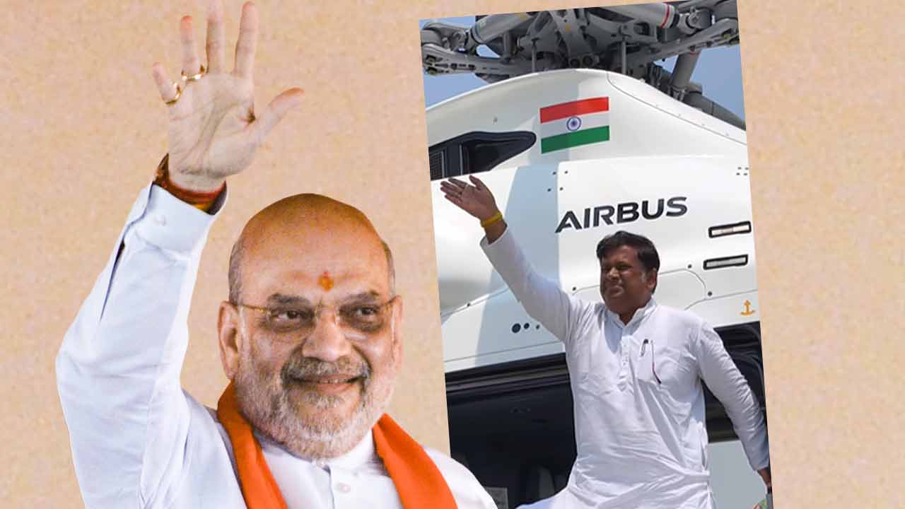 শাহের কপ্টারেই প্রচার সারছেন সুকান্ত। গ্রাফিক: আনন্দবাজার ডট কম।