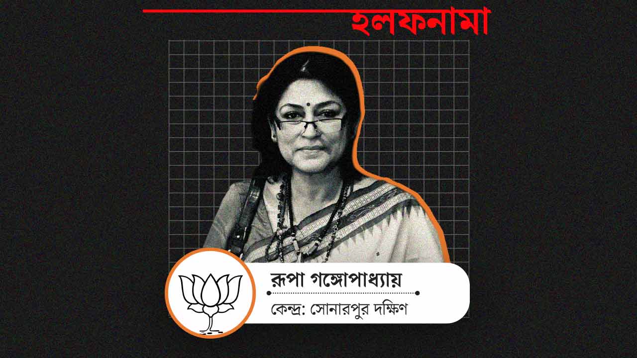 সোনারপুর দক্ষিণের বিজেপি প্রার্থী রূপা গঙ্গোপাধ্যায়। গ্রাফিক: আনন্দবাজার ডট কম।