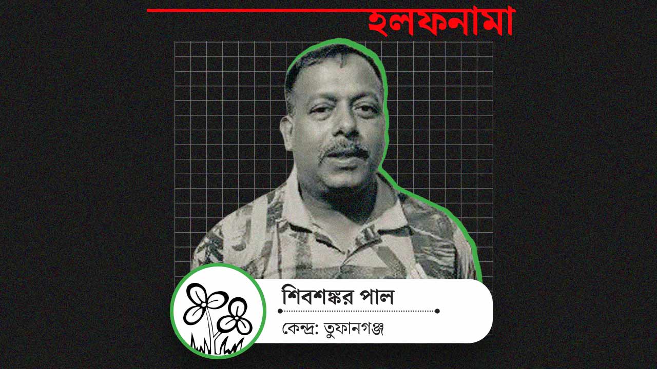 তুফানগঞ্জের তৃণমূল প্রার্থী শিবশঙ্কর পাল। গ্রাফিক: আনন্দবাজার ডট কম।