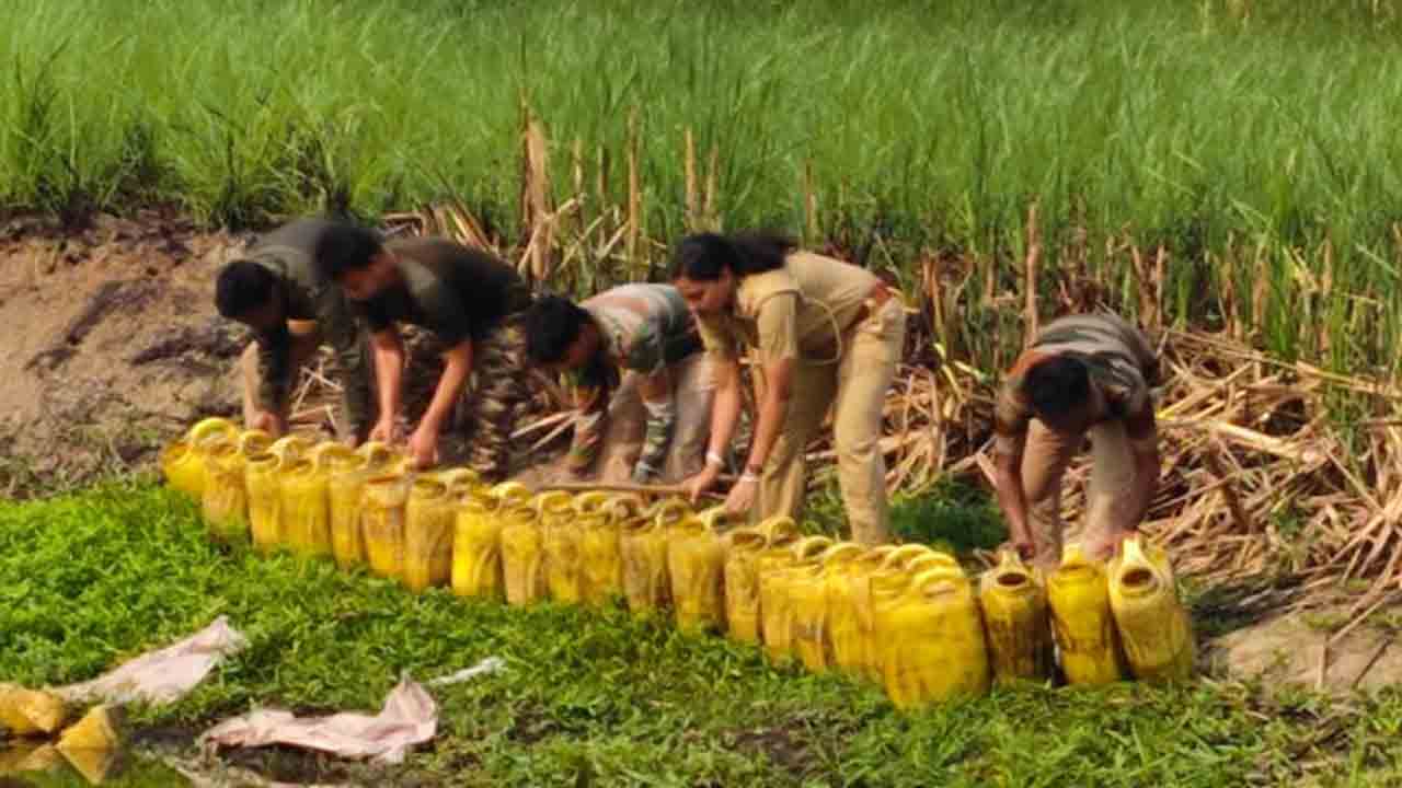 নষ্ট করা হচ্ছে বেআইনি মদ। — নিজস্ব চিত্র।