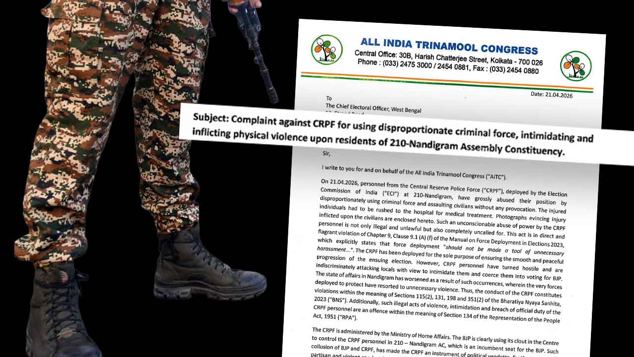 নন্দীগ্রামে বিনা কারণে গ্রামবাসীদের মারধর, ভয় দেখানোর অভিযোগ কেন্দ্রীয় বাহিনীর বিরুদ্ধে। ছবি দিয়ে সিআরপিএফের বিরুদ্ধে নির্বাচন কমিশনের কাছে নালিশ জানাল তৃণমূল। চিঠিতে তৃণমূলের দাবি, বিজেপির কথায় কাজ করছে সিআরপিএফ। কেন্দ্রীয় বাহিনীকে রাজনৈতিক স্বার্থে ব্যবহার করছে পদ্মশিবির। অবিলম্বে এটা বন্ধ করতে হবে।