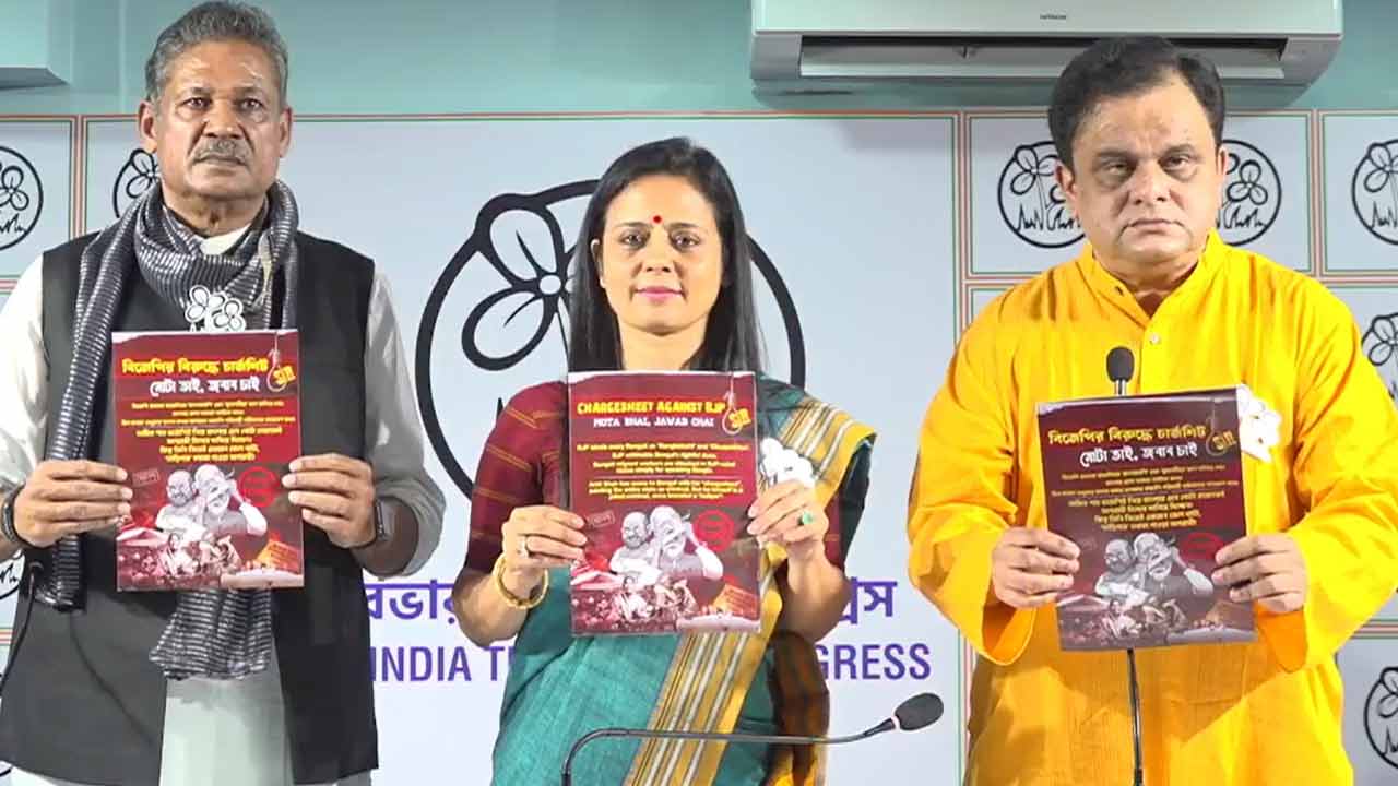 তৃণমূলের তরফে রাজ্যের শিক্ষামন্ত্রী ব্রাত্য বসু এবং দুই সাংসদ মহুয়া মৈত্র ও কীর্তি আজ়াদ সাংবাদিক বৈঠক করে ‘চার্জশিট’ পেশ করেন। একই সঙ্গে সাংবাদিক বৈঠকে শাহ যে যে প্রশ্ন তুলেছেন, তা খণ্ডন করেছেন। তৃণমূলের প্রশ্ন, ‘উনি বাংলায় এসে নারী নির্যাতনের কথা বলছেন। উন্নাও-হাথরস নিয়ে চুপ কেন? মণিপুরে নারী সুরক্ষা কোথায়?’ শাহ বার বার অনুপ্রবেশকারী প্রশ্নে পশ্চিমবঙ্গের শাসকদলকে আক্রমণ করেছেন। পাল্টা জবাবে তৃণমূলের দাবি, ‘সীমান্তের দায়িত্ব কার? বিএসএফ কার দায়িত্বে?’ তৃণমূল জানতে চায়, ‘এসআইআর করে কত জন বাংলাদেশিকে বাদ দেওয়া হয়েছে, তার হিসাব দেওয়া হোক।’ তার পরেই তৃণমূল বিজেপির বিরুদ্ধে ‘চার্জশিট’ পেশ করে।