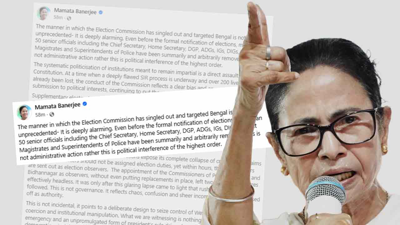 রাজ্যের সিনিয়র আধিকারিকদের আকস্মিক ভাবে স্বৈরাচারী ভঙ্গিতে পদ থেকে অপসারণ করা হয়েছে বলে অভিযোগ তুলেছেন মমতা। এই বদলিগুলিকে কোনও প্রশাসনিক পদক্ষেপ হিসাবে দেখছেন না তিনি। বরং, এগুলিকে সর্বোচ্চ পর্যায়ের রাজনৈতিক হস্তক্ষেপ বলেই বর্ণনা করছেন মুখ্যমন্ত্রী তথা তৃণমূলনেত্রী। নির্বাচনী বিজ্ঞপ্তি আনুষ্ঠানিক ভাবে প্রকাশের আগেই ৫০ জনেরও বেশি সিনিয়র আধিকারিককে পদ থেকে সরিয়ে দেওয়া হয়েছে বলে অভিযোগ মমতার। তিনি লেখেন, “আইবি, এসটিএফ এবং সিআইডি-র মতো গুরুত্বপূর্ণ প্রতিষ্ঠানের সিনিয়র আধিকারিকদের বেছে বেছে পদ থেকে সরিয়ে ভিন্রাজ্যে পাঠিয়ে দেওয়া হচ্ছে। এটি রাজ্যের প্রশাসনিক ব্যবস্থাকে পঙ্গু করে দেওয়ার এক সুপরিকল্পিত চেষ্টার দিকেই ইঙ্গিত করে।”