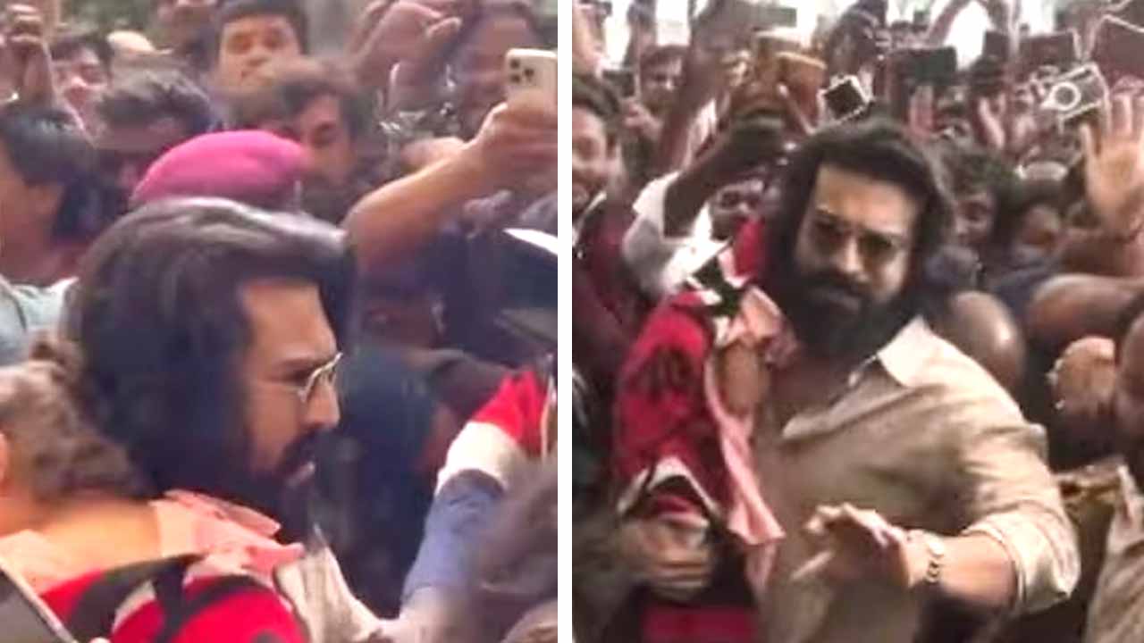 ভিডিয়োয় দেখা গিয়েছে মেয়ে ক্লিন কারাকে চাদরে জড়িয়ে কোলে করে গাড়ি থেকে নামছেন অভিনেতা। আর রাম চরণকে নাগালে পেয়েই হামলে পড়ে ছবিশিকারিরা। এমন ঘটনা আগেও ঘটেছে। অভিনেত্রী নিধি আগরওয়াল থেকে সমান্থা রুথ প্রভু—ভয়ানক পরিস্থিতির সম্মুখীন হয়েছিলেন। আমজনতার ধাক্কাধাক্কিতে নিধির পোশাক ধরেও টানাটানি হয়েছিল। যা নিয়ে বিভিন্ন মহলে সমালোচনা হয়। আবার একই ঘটনার সম্মুখীন রাম চরণ।