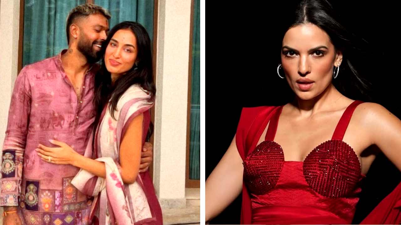 (বাঁ দিকে) মাহিকার সঙ্গে হার্দিক, (ডান দিকে) নাতাশা স্ত্যানকোভিচ। ছবি: সংগৃহীত।