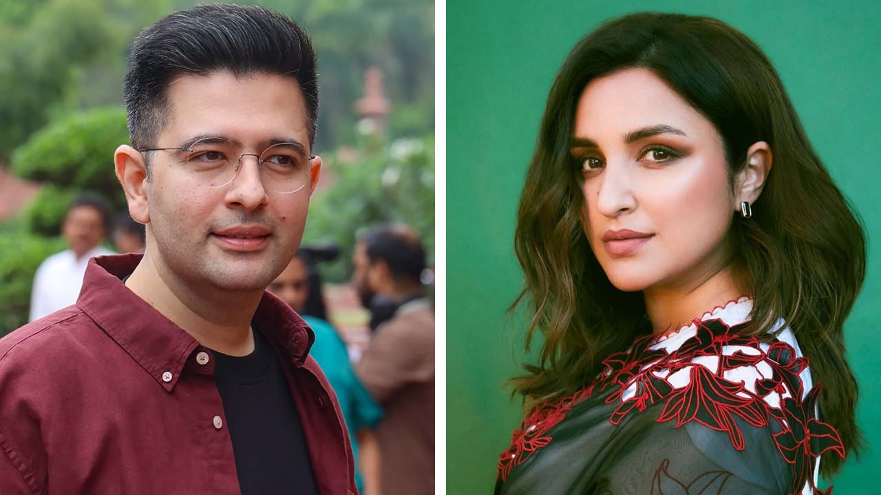 (বাঁ দিকে) রাঘব চড্‌ঢা, (ডান দিকে) পরিণীতি চোপড়া। ছবি: সংগৃহীত।