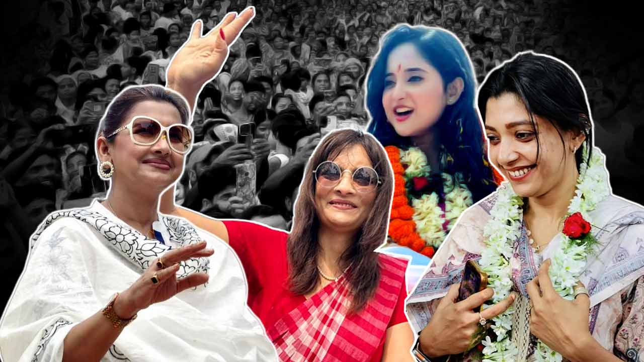 বৈশাখের দাবদাহে কী ভাবে প্রচার চালাচ্ছেন টলি-অভিনেত্রীরা? গ্রাফিক: আনন্দবাজার ডট কম।