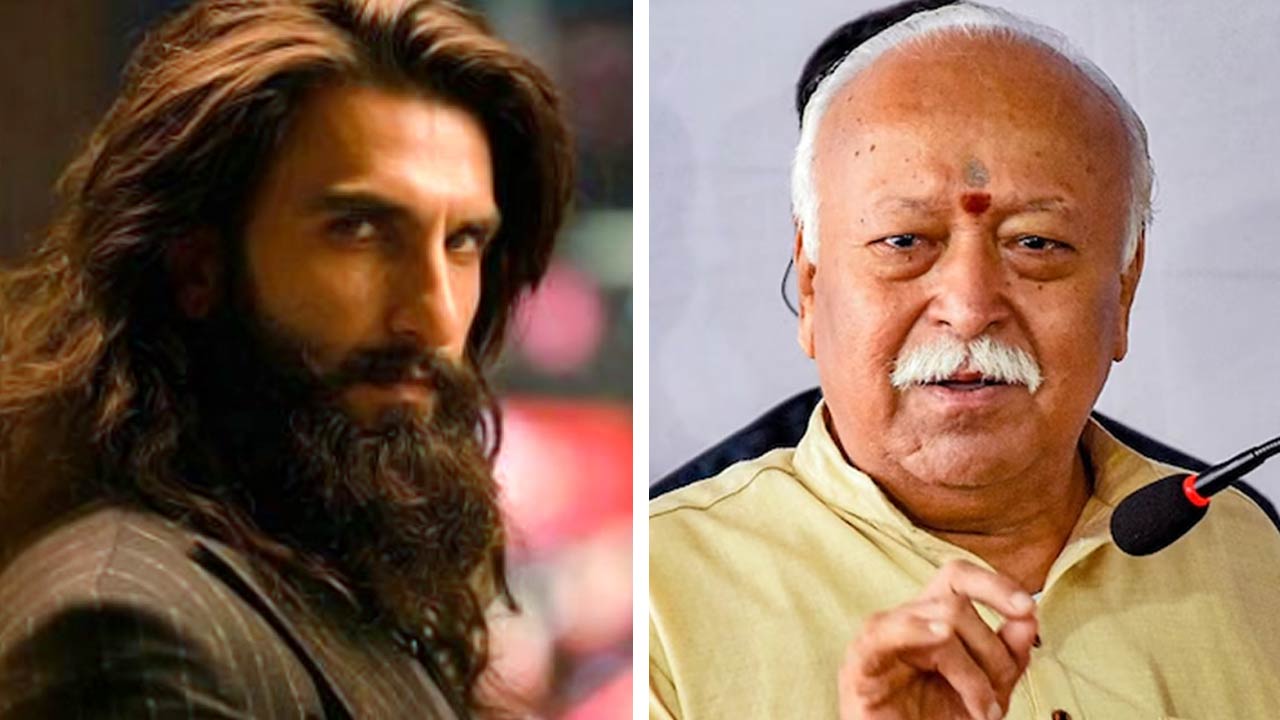 (বাঁ দিকে) রণবীর সিংহ, মোহন ভাগবত (ডান দিকে)। ছবি: সংগৃহীত।
