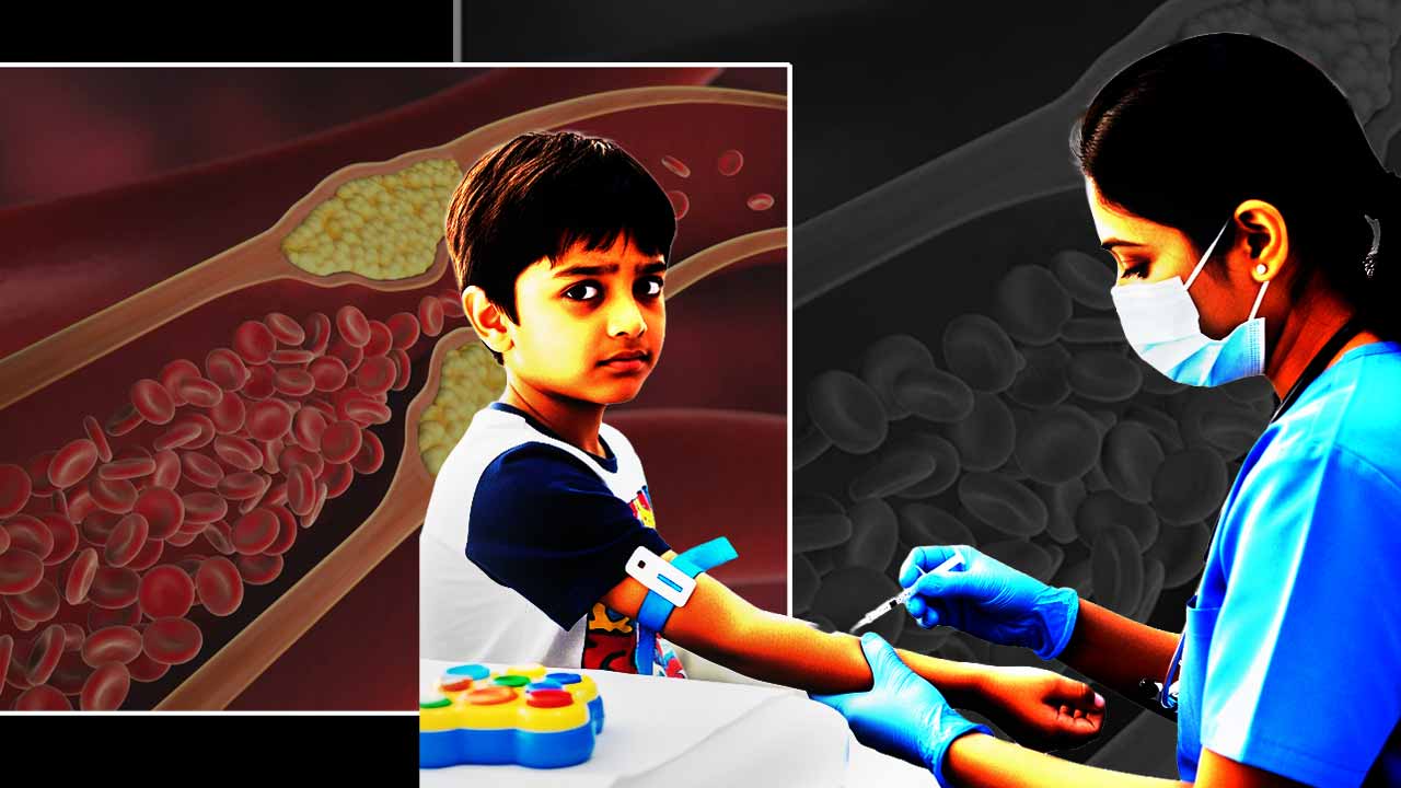 রক্তে কোলেস্টেরলের মাত্রা বেড়েছে শুনলেই বেশির ভাগ মানুষের কপালে চিন্তার ভাঁজ পড়ে যায়! কোলেস্টেরল বাড়লেই হৃদ্রোগেরও ঝুঁকিও বেড়ে যায়। অনিয়ন্ত্রিত জীবনযাপন এবং অস্বাস্থ্যকর খাদ্যাভ্যাস রক্তে ‘খারাপ’ কোলেস্টেরলের মাত্রা ক্রমাগত বাড়িয়ে দেয়। দীর্ঘ দিন ধরে রক্তে ভাসতে থাকা ওই চটচটে পদার্থগুলিই এক সময়ে ধমনীর গায়ে আটকে যায়। শরীরে রক্ত চলাচল করতে বাধা পায়, শুরু হয় নানা সমস্যা। বয়স ২০ বা ৩০ বছর পেরোলে কোলেস্টেরল পরীক্ষা করিয়ে নেওয়ার কথা বলা হয়। কিন্তু এখন সে ধারণা বদলেছে। নতুন নির্দেশিকায় বলা হয়েছে, কোলেস্টেরল পরীক্ষা করাতে হবে ছোট থেকেই। আদর্শ বয়স ৯ থেকে ১১ বছর।