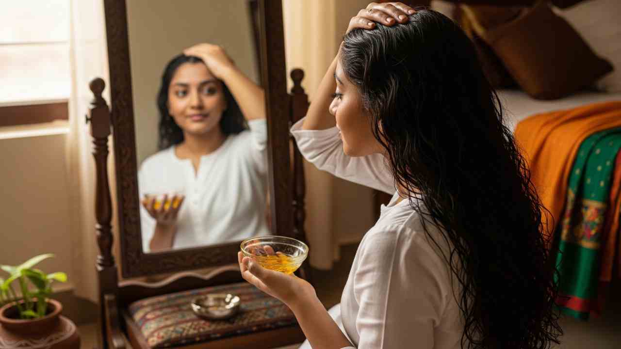 গরমে চুল ভাল রাখবে কর্পূরের তেল, কী ভাবে বানাবেন? ছবি: এআই সহায়তায় প্রণীত।