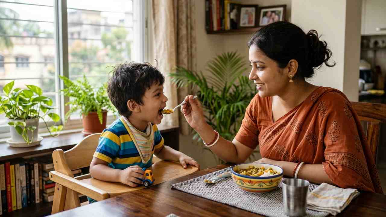 হাম-পক্সে ভুগলে শিশুকে কী কী খাওয়াতে হবে? ছবি: এআই সহায়তায় প্রণীত।