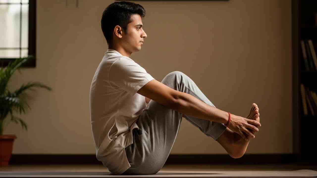 সামনের দিকে পা ছড়িয়ে বসুন। পায়ের পাতার অভিমুখ রাখুন আপনার দিকে। শিরদাঁড়া সোজা রাখুন। এ বার শ্বাস নিন। দুটো হাত একসঙ্গে মাথার উপর সোজা করে তুলুন। এর পরে শ্বাস ছাড়ুন। এ বার আস্তে আস্তে সামনের দিকে ঝুঁকুন। হাতদুটো গোড়ালি পর্যন্ত পৌঁছলে একটির কব্জি দিয়ে আর একটি ধরে রাখুন। মাথা রাখুন হাঁটুতে। এরপর শ্বাস ছাড়ুন। খেয়াল রাখুন শিরদাঁড়া যেন সামনের দিকে প্রসারিত থাকে। শ্বাস নিন। এর পরে আস্তে আস্তে হাতদুটো সরিয়ে মাথার উপর নিয়ে গিয়ে শ্বাস ছাড়ুন। এ বার হাত দুটো নামিয়ে নিয়ে পূর্বের ভঙ্গিতে ফিরে যান। মানসিক উদ্বেগ কমাবে এই ব্যায়াম।