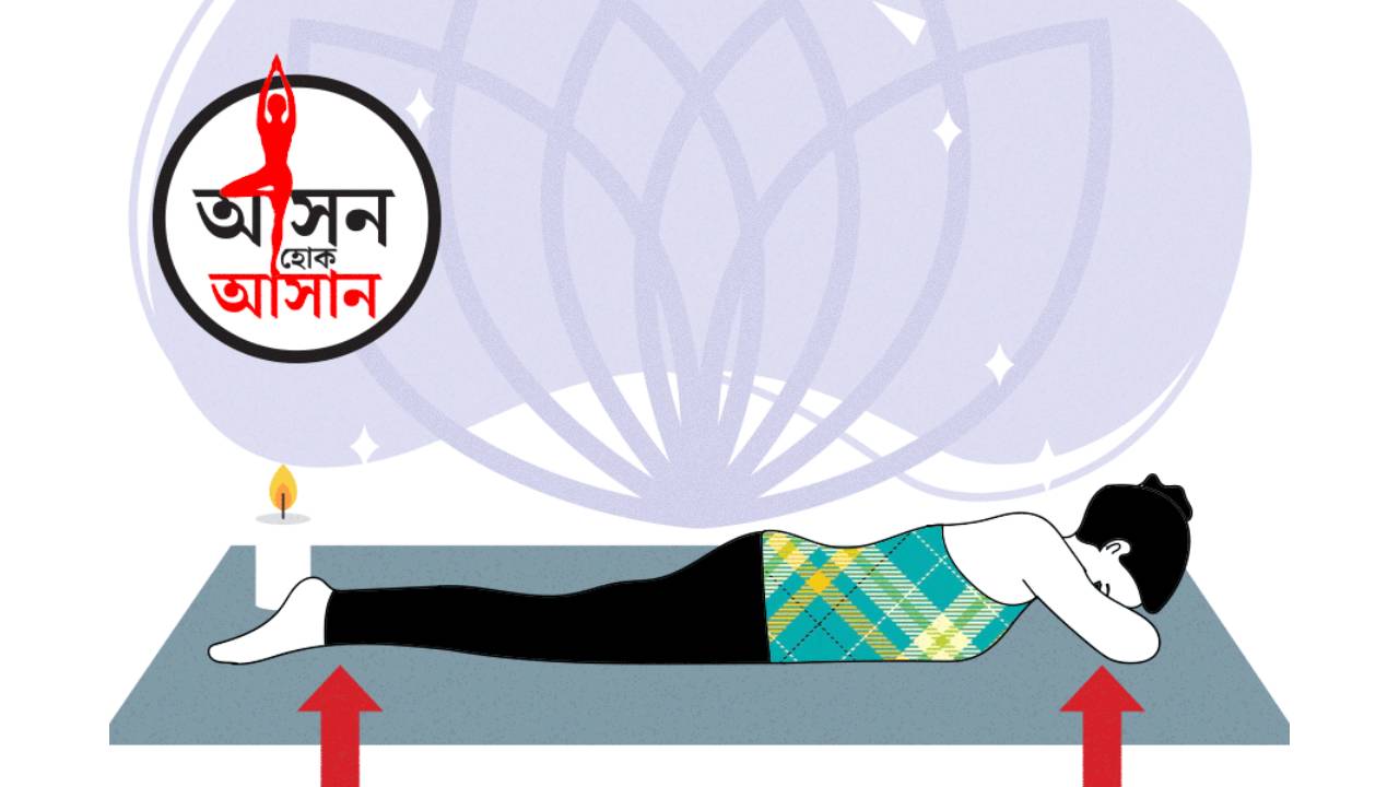 ১) ম্যাটের উপর উপুড় হয়ে শুয়ে পড়ুন। শ্বাসপ্রশ্বাস স্বাভাবিক থাকবে।