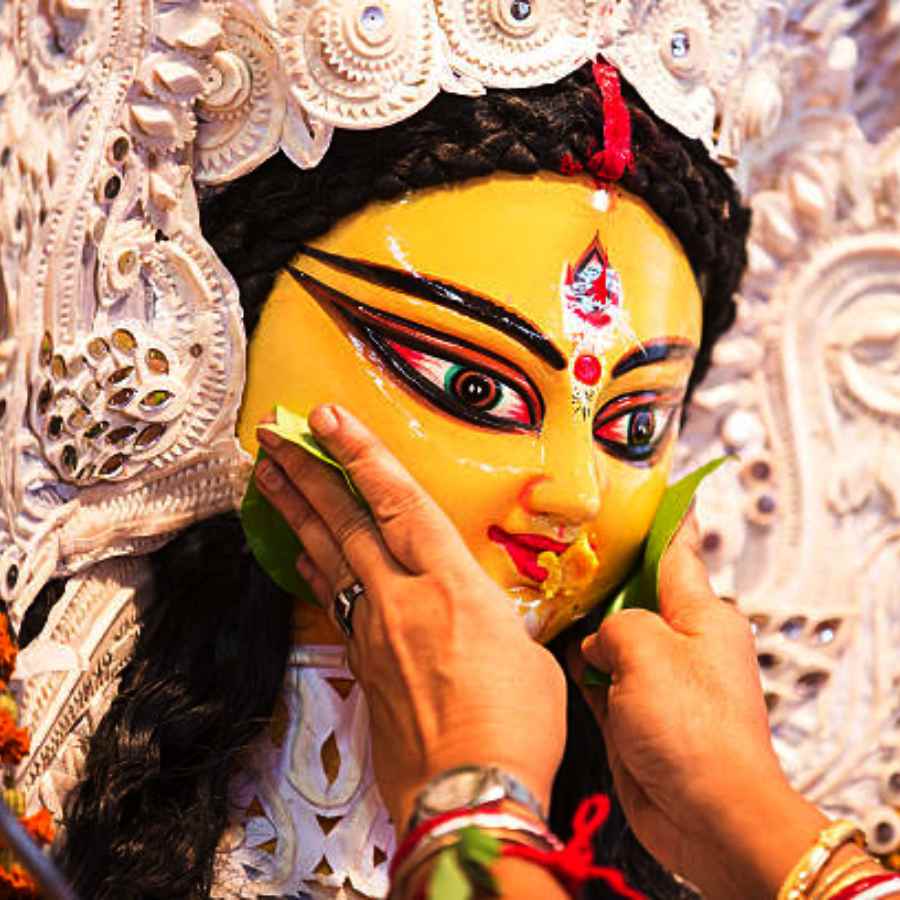 মাকে বরণ করার সময় মায়ের সিঁথিতে এবং শাঁখায় সিঁদুর দিতে হবে। দু’হাতে দুটো পান মায়ের মুখে ছুঁইয়ে দিতে হবে। মনে করা হয়, দেবী দুর্গাকে মায়ের রূপে বরণ করলে তাঁর পায়ে এবং কন্যা রূপে বরণ করলে তাঁর মাথায় ধান-দূর্বা দিতে হবে। তার পর মাকে মিষ্টিমুখ করাতে হবে এবং জল খাওয়াতে হবে। সব শেষে খিলি করা পানটা মায়ের হাতে নিবেদন করতে হবে।