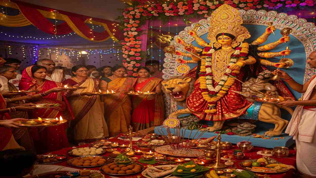 সকাল ১১টা ২৫ মিনিট গতে সন্ধিপুজো আরম্ভ।
