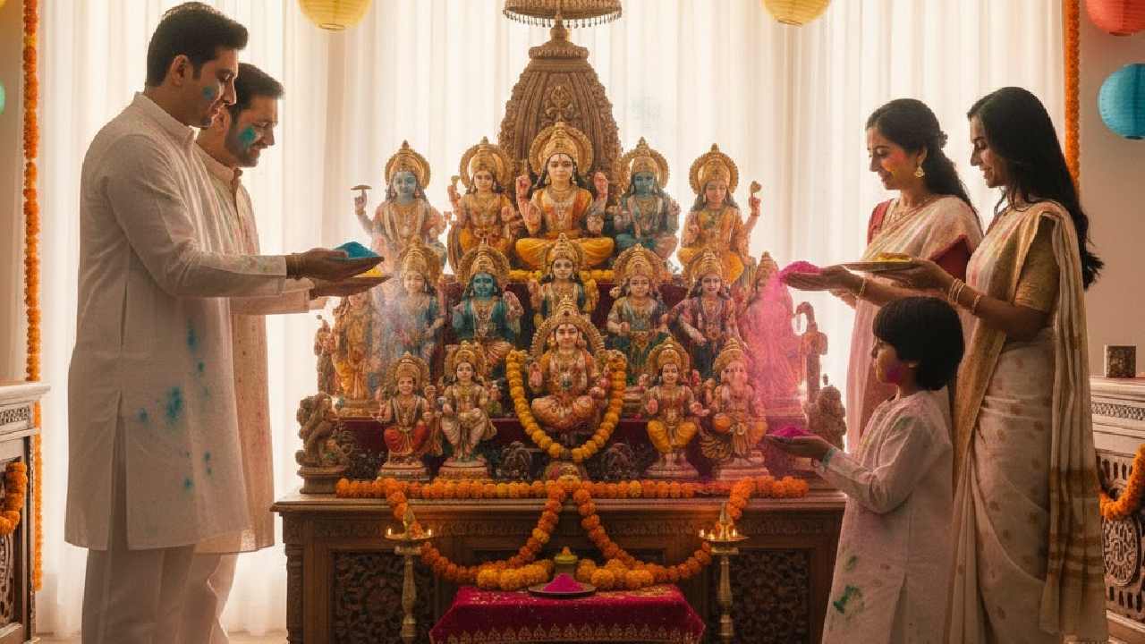 ৩ মার্চ ২০২৬, মঙ্গলবার দোলযাত্রা। রং খেলা মানেই আনন্দের উৎসব। দোলযাত্রা অত্যন্ত পবিত্র একটা দিন। এই দিনে আমরা প্রায় সকলেই একে অপরের সঙ্গে মিলেমিশে আনন্দ উপভোগ করে থাকি। তবে আশপাশের মানুষদের রং দেওয়ার আগে ঈশ্বরকে রং দেওয়ার চল আমাদের মধ্যে রয়েছে। তার পর বাড়ির বড়দের পায়ে রং দিয়ে তাঁদের আশীর্বাদ নিয়ে শুরু হয় রং খেলা। ঈশ্বরকে রং দেওয়ার ক্ষেত্রে বহু মানুষই জানেন না কাকে সবার প্রথমে রং দিতে হয়। শাস্ত্র জানাচ্ছে, নির্দিষ্ট সারিতে ঈশ্বরদের রং দিতে হয়। না হলে তাঁরা সেই রং গ্রহণ করেন না। জেনে নিন, এই বছর দেবতার চরণে রং দেওয়ার পূর্বে সবার প্রথমে কার পায়ে রং দেবেন।