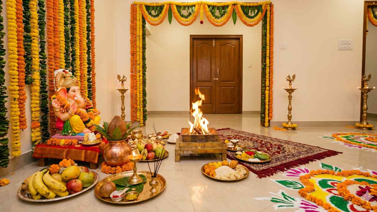 যে কোনও শুভ কাজের শুরুতে বিঘ্নহর্তা গণেশের পুজো দেওয়া আবশ্যিক। গৃহপ্রবেশের আগে দরজার সামনে গণেশের মূর্তি বা ছবি স্থাপন করুন।