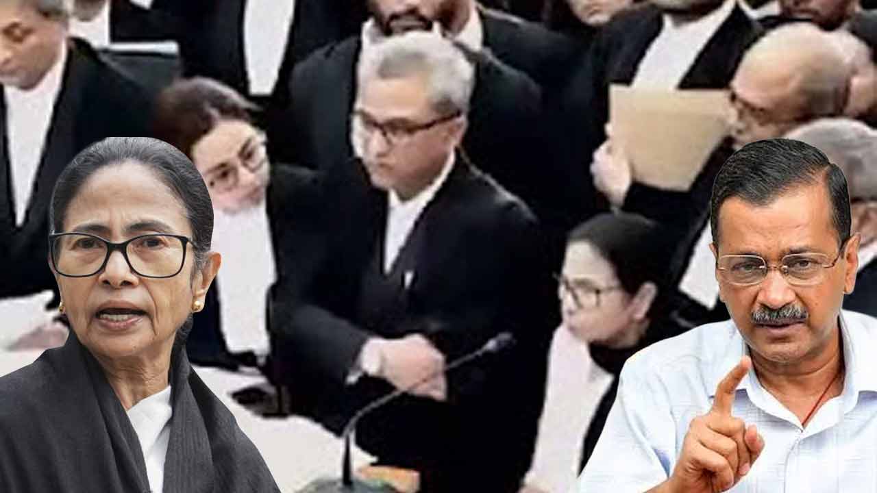 (বাঁ দিকে) সুপ্রিম কোর্টে সওয়ালে পশ্চিমবঙ্গের মুখ্যমন্ত্রী মমতা বন্দ্যোপাধ্যায়। দিল্লির প্রাক্তন মুখ্যমন্ত্রী তথা আপ প্রধান অরবিন্দ কেজরীওয়াল (ডান দিকে)। গ্রাফিক: আনন্দবাজার ডট কম।