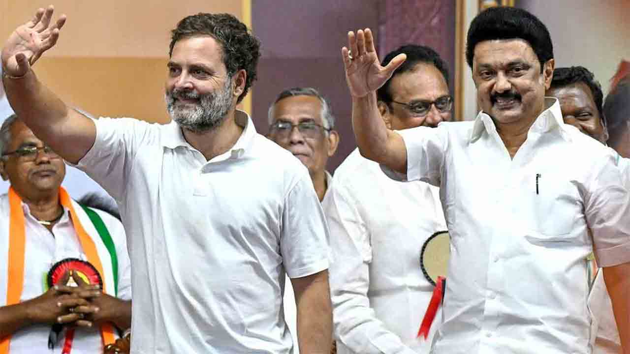 এমকে স্ট্যালিনের সঙ্গে রাহুল গান্ধী। ফাইল চিত্র।