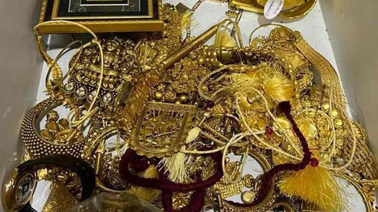 আয়কর হানায় উদ্ধার হওয়া সোনার গয়নার কিছু অংশ। ছবি: সংগৃহীত।