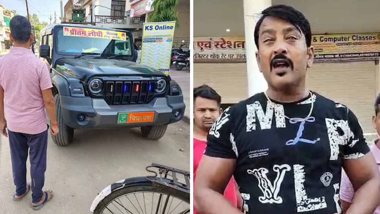 (বাঁ দিকে) বিধায়ক-পুত্রের এসইউভি। (ডান দিকে) বিধায়ক-পুত্র দীনেশ লোঢী।