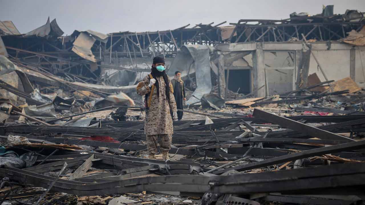 আফগানিস্তানের রাজধানী কাবুলে ধ্বংস হয়ে যাওয়া হাসপাতাল। সোমবার রাতে এই হাসপাতালে হামলা করে পাকিস্তান। ছবি: রয়টার্স।