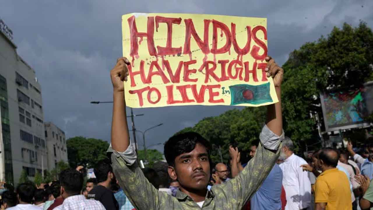 বাংলাদেশএ সংখ্যালঘুদের বিক্ষোভ। ছবি: সংগৃহীত।