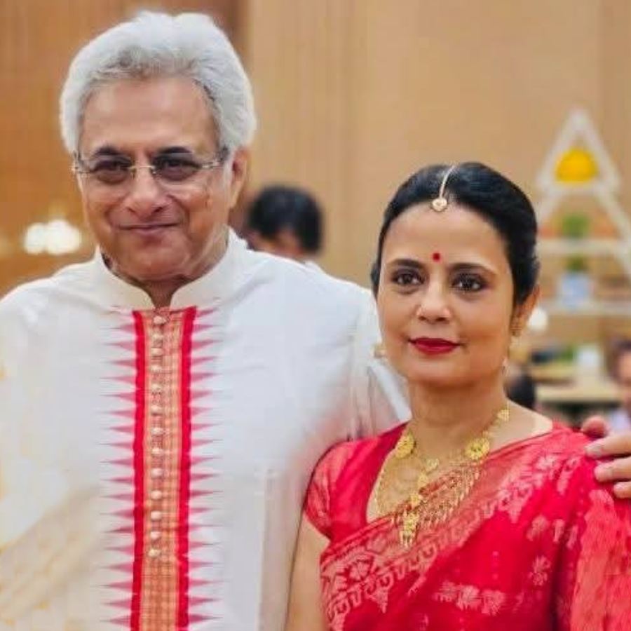 নবদম্পতি। পিনাকী মিশ্রের সঙ্গে মহুয়া মৈত্র। ছবি : সংগৃহীত।