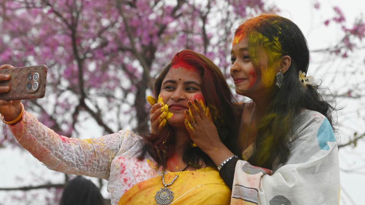 বসন্ত উৎসবে চলছে আবির খেলা। রবিবার, ময়দানে। ছবি: বিশ্বনাথ বণিক।