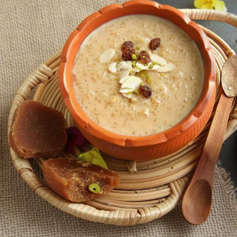 শীতকাল মানেই খেজুর গুড়ের চাহিদা ঘরে ঘরে। পিঠেপুলি হোক বা পায়েস, সন্দেশ হোক বা নাড়ু— সবেতেই এই গুড়ের অবাধ যাতায়াত। শীতের জলখাবারে রুটি, লুচি বা পরোটার সঙ্গেও খেজুর গুড়ের সঙ্গত মন্দ লাগে না। তাই শীত পড়লেই বাজারে বাজারে গুড়ের দরদাম শুরু করে ভোজনরসিক বাঙালি।