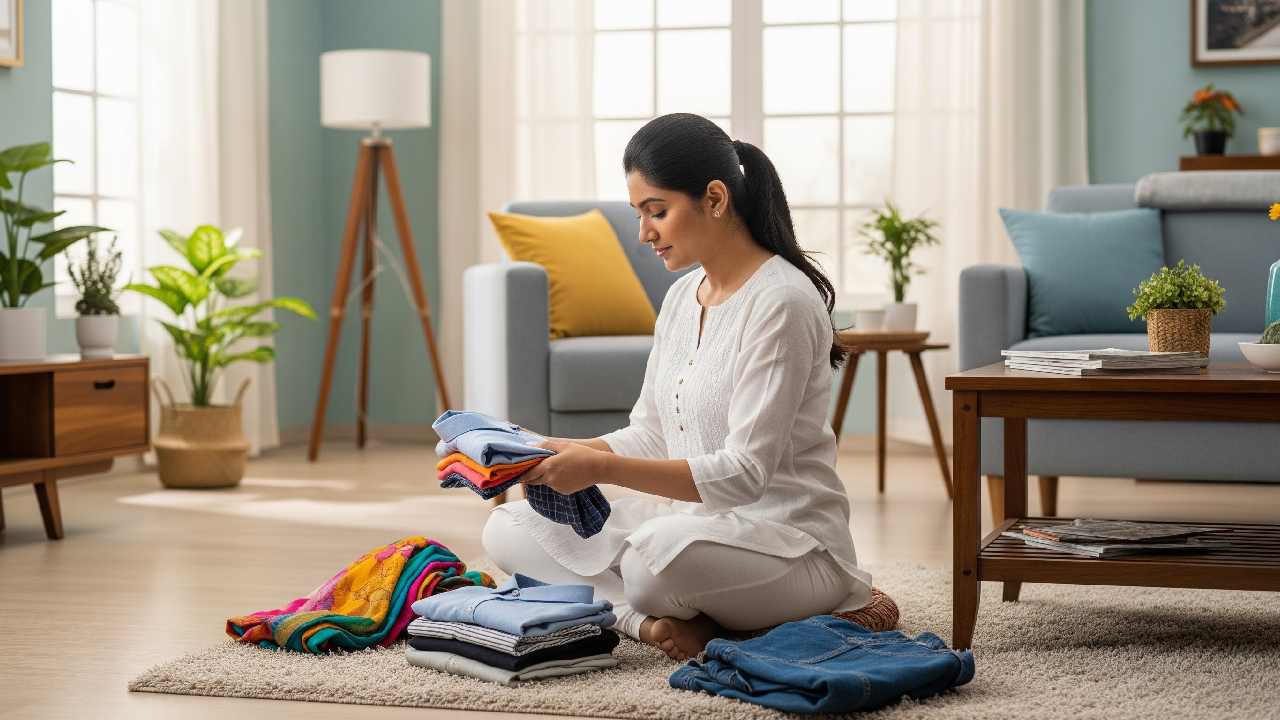 প্রথম ৫ মিনিট: ঘরের ছড়িয়ে ছিটিয়ে থাকা কাপড়গুলো গুছিয়ে রাখা।