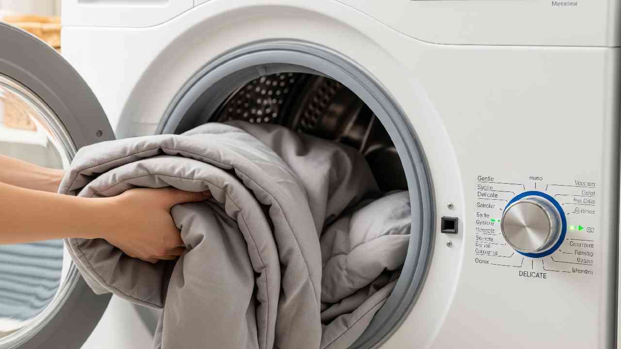 ওয়াশিং মেশিনে কম্বল, লেপ কী ভাবে কাচবেন, যাতে জিনিসটি নষ্ট না হয়ে যায়। ছবি: এআই সহায়তায় প্রণীত।