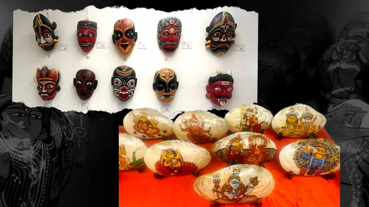 ১৭ এপ্রিল যেন এক টুকরো দিনাজপুরের ঝলক মিলল কলকাতার বুকে। গগনেন্দ্র শিল্প প্রদর্শাশালায় শিল্পী শর্মিলা সেনের উদ্যোগে আয়োজিত আর্ট বিয়ন্ড ট্র্যাডিশন নামক শিল্পপ্রদর্শনীর মূল বিষয় হল মুখোশ এবং তার নেপথ্যকাহিনি। ২০ এপ্রিল পর্যন্ত চলবে প্রদর্শনী। কেবল দিনাজপুরের মুখোশ নয়, প্রদর্শনীতে মিলবে দক্ষিণ ভারতের ছোঁয়াও। কথাকলি নৃত্যের মুখোশের আদলেও রয়েছে একাধিক মুখোশ। রয়েছে আফ্রিকার মুখোশের নানা আদল। শর্মিলা বলেন, “আমার পুরো কাজটাই এক জন কারিগরের কাজ। আমি নকশা বানিয়ে দিই। কারিগর সেই নকশাকেই বাস্তবের রূপ দেন । মুখোশ তৈরিতে দক্ষ কারিগরের প্রয়োজন। তবে অধিকাংশ মুখোশ শিল্পই অবলুপ্তির পথে চলে যাচ্ছে। কারণ, শিল্পী বা কারিগররা এই শিল্পে আর লাভের মুখ দেখতে পারছেন না । এই শিল্পকে বাঁচিয়ে রাখতে এ রকম আরও অনেক প্রদর্শনীর প্রয়োজন। যুবসমাজের সঙ্গে এর পরিচয় করানো ভীষণ জরুরি। তবেই তো তাঁদের আগ্রহ তৈরি হবে। উন্নতি হবে শিল্পের।”