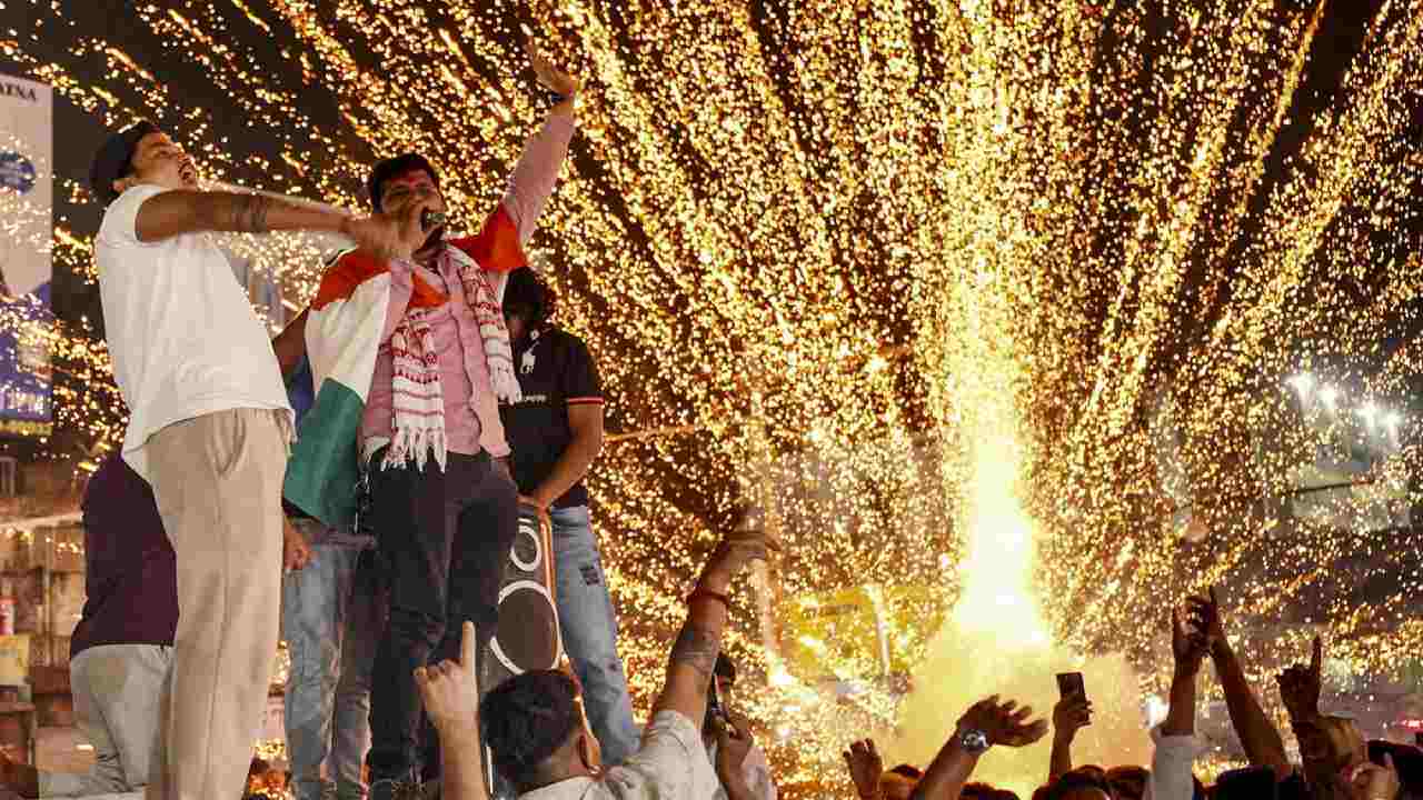 রবিবার রাতে ভারতের জয় এক সূত্রে গেঁথেছে সারা দেশকে। খেলার শেষে পুরস্কার বিতরণীর পর মাঠেই যেমন আনন্দে নাচতে দেখা গেছে সুনীল গাওস্কর, সূর্যকুমার যাদব, হার্দিক পাণ্ড্য, অভিষেক শর্মাদের, তেমনই তাঁদের জয় উদ্যাপন করতে রাতের বেলাতেই রাস্তায় নেমেছিলেন ভারতের বিভিন্ন প্রান্তের মানুষ।