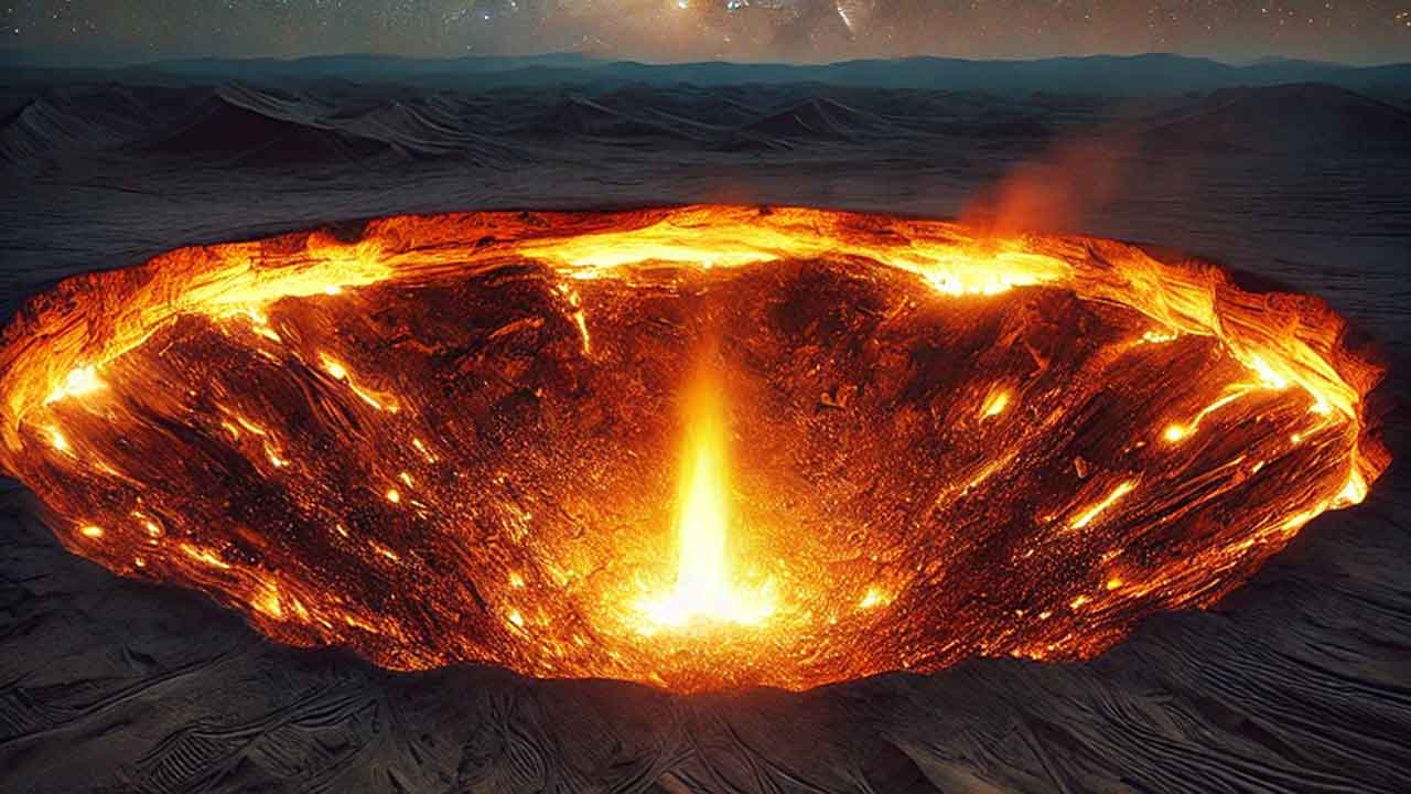 ধূ ধূ মরুভূমির মাঝে ২০ মিটার গভীর একটা রহস্যময় গর্ত। অর্ধদশকেরও বেশি সময় ধরে একটানা আগুন জ্বলছে সেই অগ্নিকুণ্ডে। ১৯৭১ সাল থেকে ক্রমাগত আগুন বেরিয়ে আসছে জ্বালামুখটি থেকে। মিথেন গ্যাসে ভরা এই গহ্বর দিন-রাত বছরের পর বছর ধরে এ ভাবেই জ্বলছে।
