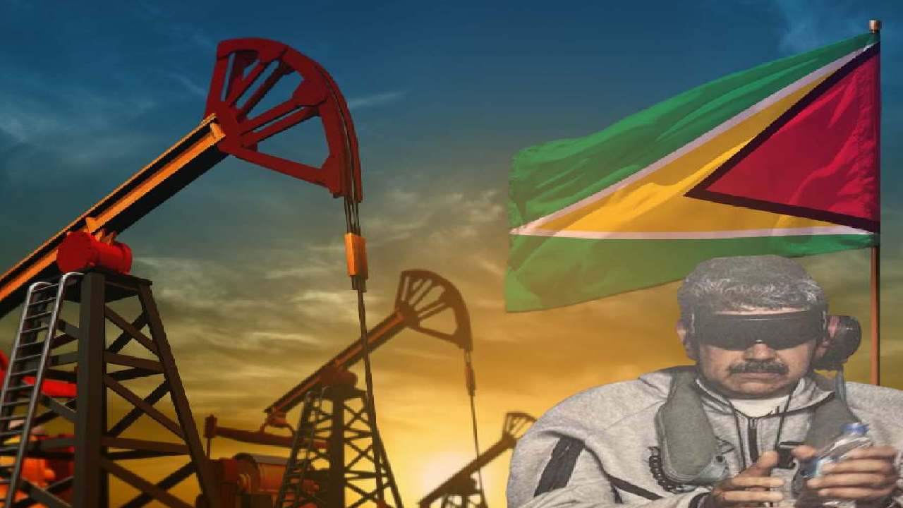 বিদেশি বিনিয়োগকারী এবং তেল উত্তোলনকারী সংস্থার পাশাপাশি হঠাৎ তেলসম্পদে ধনী হওয়া দেশটির প্রতি নজর পড়ে প্রতিবেশী দেশ ভেনেজ়ুয়েলারও। সামরিক ক্ষমতায় দুর্বল দেশটিকে চোখ রাঙিয়ে তেলের ভান্ডার দখলের ছক কষতে শুরু করেন কারাকাসের কর্তা ও তৎকালীন প্রেসিডেন্ট নিকোলাস মাদুরো। প্রাক্তন ব্রিটিশ উপনিবেশটির ফৌজিশক্তি ভেনেজ়ুয়েলার ধারেকাছে নেই।