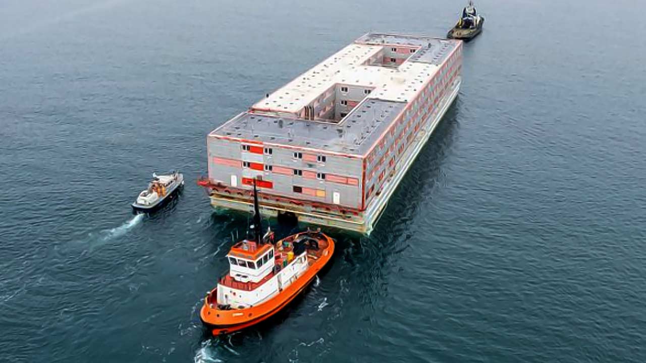 জলের উপর ভাসছে তিনতলা বাড়ি। দূর, এমনটা আবার হয় নাকি! হ্যাঁ, একনজরে বার্জটিকে দেখে বাড়ি ভেবে ভিরমি খাওয়ার মতো। তবে এই ভাসমান বাড়িই কিন্তু একসময় ৫০০ জন মানুষের অস্থায়ী ঠিকানা ছিল।