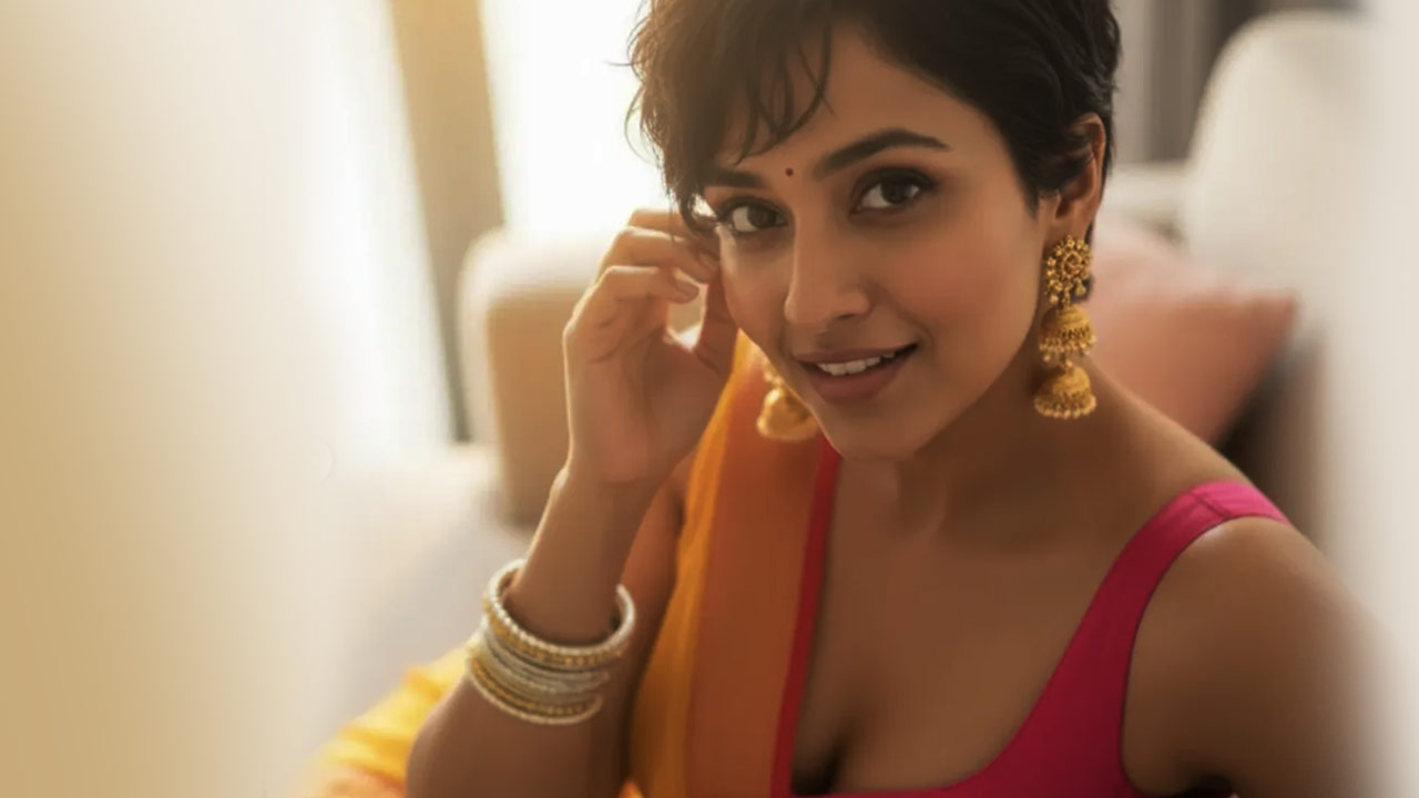 চুল ছোট করে ছাঁটা। হালকা মেকআপ। পোশাকের সঙ্গে মানানসই ছিমছাম গয়না। ভারতীয় পোশাকই হোক বা পাশ্চাত্য পোশাক, সবেতেই সমান ভাবে আকর্ষণীয়া।