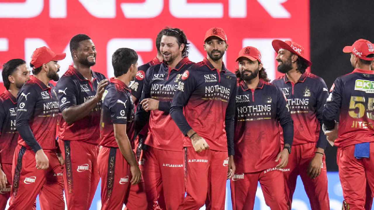বেঙ্গালুরুর ক্রিকেটারদের উল্লাস। ছবি: পিটিআই।