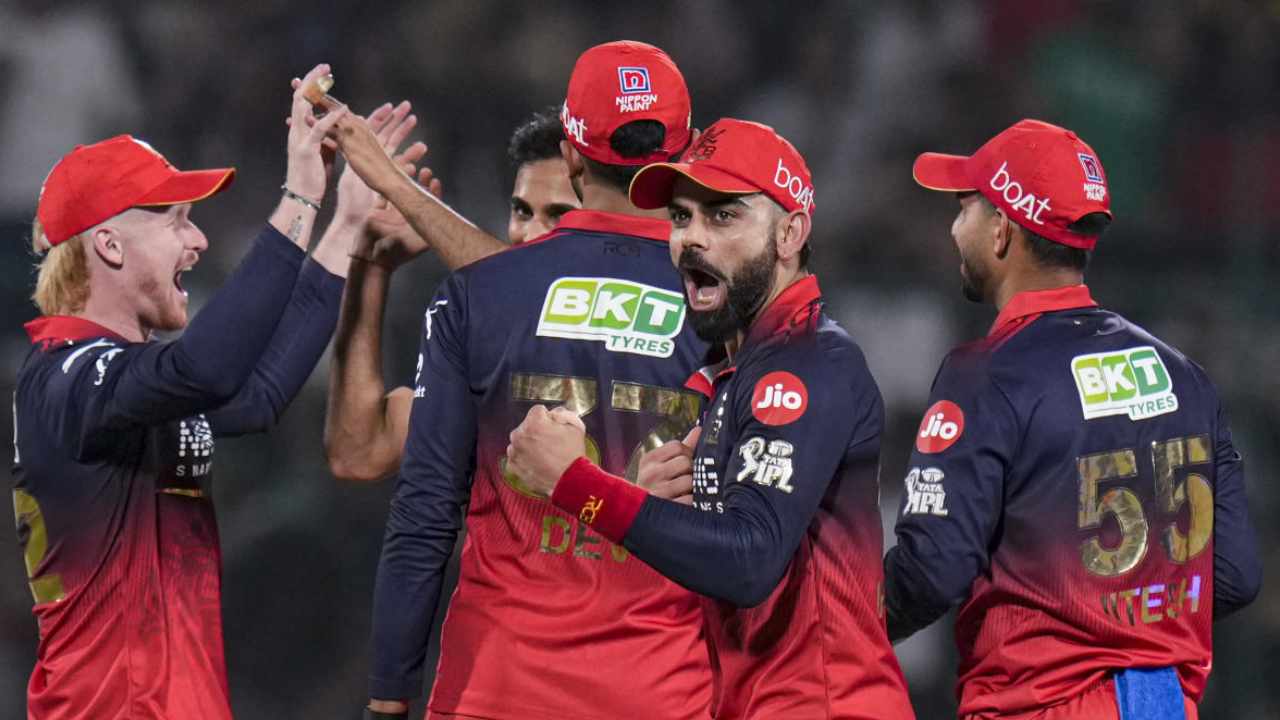 বেঙ্গালুরুর ক্রিকেটারদের উল্লাস। ছবি: পিটিআই।