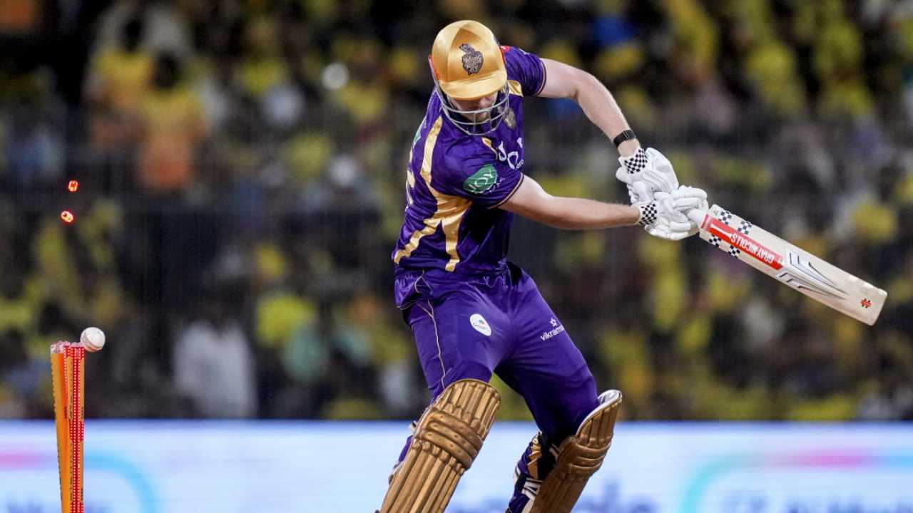 চেন্নাই ম্যাচে গ্রিনের বোল্ড হওয়ার মুহূর্ত। ছবি: পিটিআই।