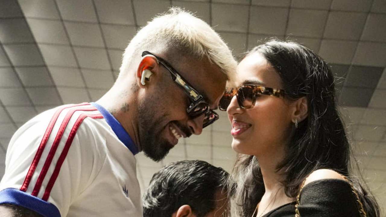 হার্দিক পাণ্ড্য (বাঁ দিকে) এবং মাহিকা শর্মা। ছবি: পিটিআই।