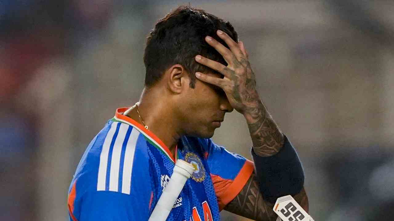 আউট হয়ে হতাশ ভারত অধিনায়ক সূর্যকুমার যাদব। ছবি: পিটিআই।