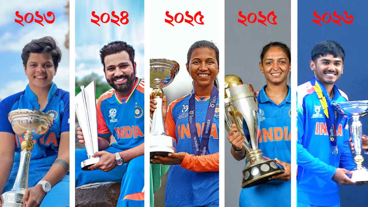 এই নিয়ে ছ’বার অনূর্ধ্ব-১৯ বিশ্বকাপ জিতল ভারত। শুধু তাই নয়, গত তিন বছরে পাঁচটি বিশ্বকাপ জিতল তারা। এর আগে মেয়েদের অনূর্ধ্ব-১৯ দল দু’বার বিশ্বকাপ জিতেছে। মেয়েদের দল গত বছর এক দিনের বিশ্বকাপ জিতেছে। ছেলেরা ২০২৪ টি-টোয়েন্টি বিশ্বকাপ জিতেছে। এ বার ছেলেদের অনূর্ধ্ব-১৯ দলও বিশ্বকাপ জিতল।